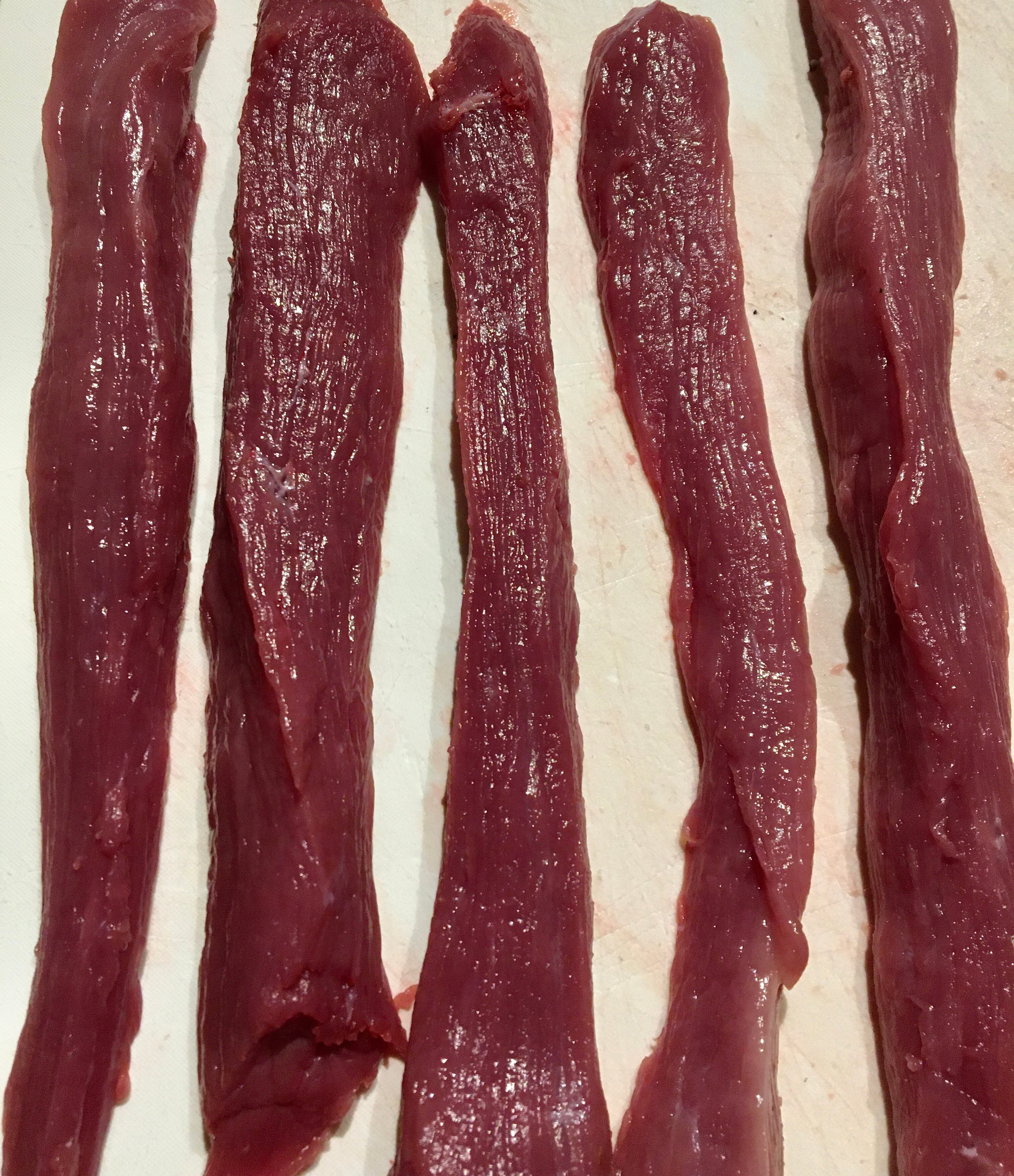 猪肉を細長く、太くスティック状にカットしました