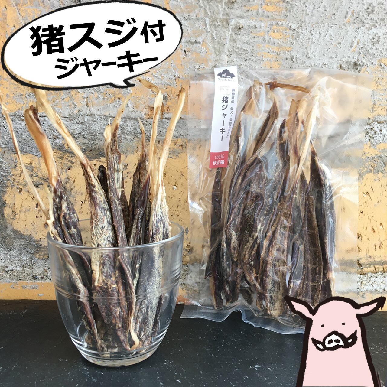 猪の前足、後足のスネに付いている、ふくらはぎ部分をジャーキーにしました